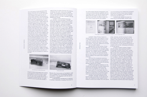 (…) Lampens works almost exclusively with concrete, wood and glass. Formally, his homes are designed to showcase an interior and exterior harmony with their environment and nature. Borders, cardinal orientation and lines of sight are all central to the placement and construction of the home. Typically, Lampens’ homes are closed to the public on one side (concrete walls shield the house from the street), but are otherwise completely open to nature, so that there is always a formal exchange between transparency and closure. He constantly tries to reach an absolute reconciliation of the antagonism between Le Corbusier’s whimsy and Mies van der Rohe’s control. He also has a deep admiration for Oscar Niemeyer, the bunkers along the Atlantic wall and Romanesque architecture. He got to know the work of Oscar Niemeyer through the first magazine he ever bought: L’ Architecture d’Aujourd’hui from 1947. This volume was a very important stimulant for his thinking and an inspirational source for him. It had a focus on Brazilian architecture and Lampens was especially impressed by the plans, sections and photographs of Pampulha by Niemeyer. (…)
